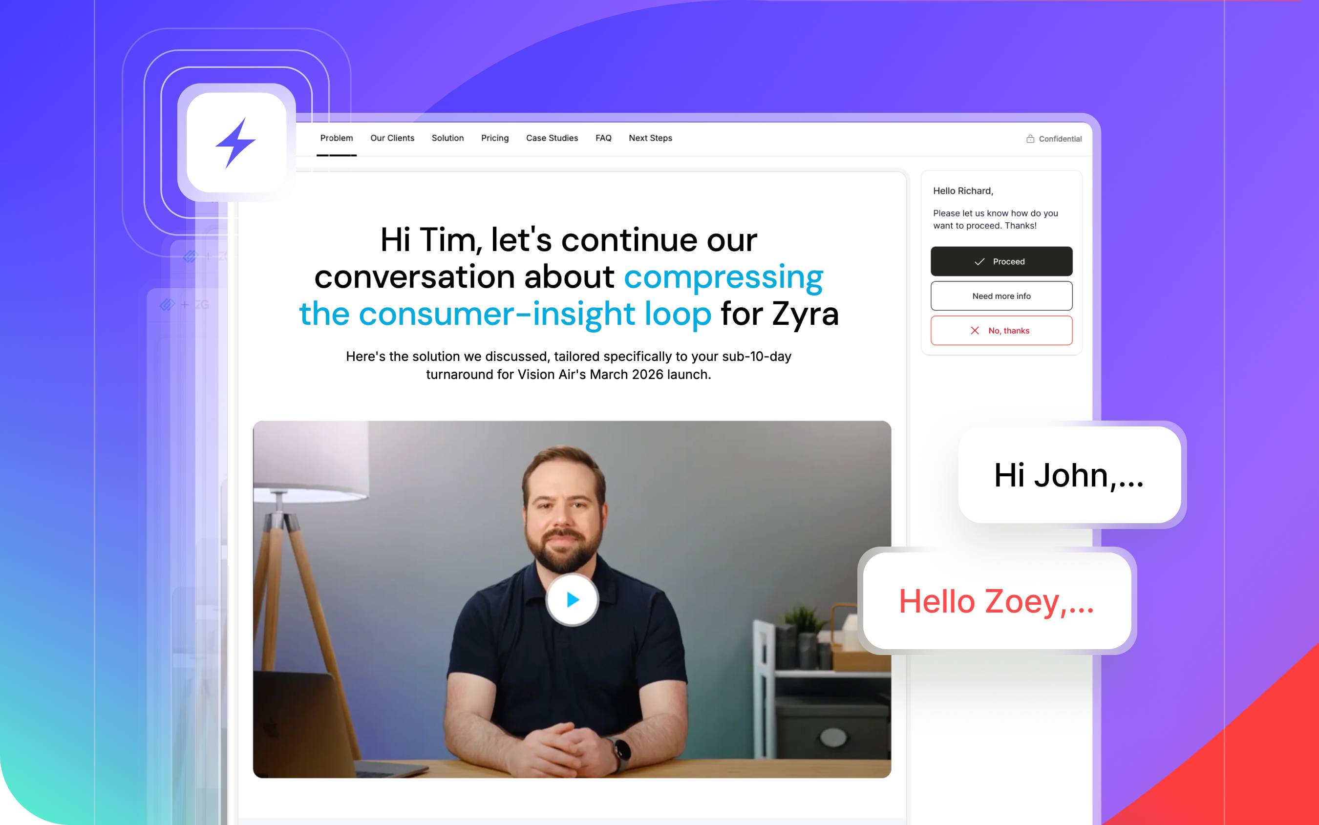 No more sending content into the void. Scene pings you the second a prospect opens, clicks, or shares—and shows exactly what grabbed them. Pricing? Process? Pitch? Now you know what to double down on to keep momentum and close faster.