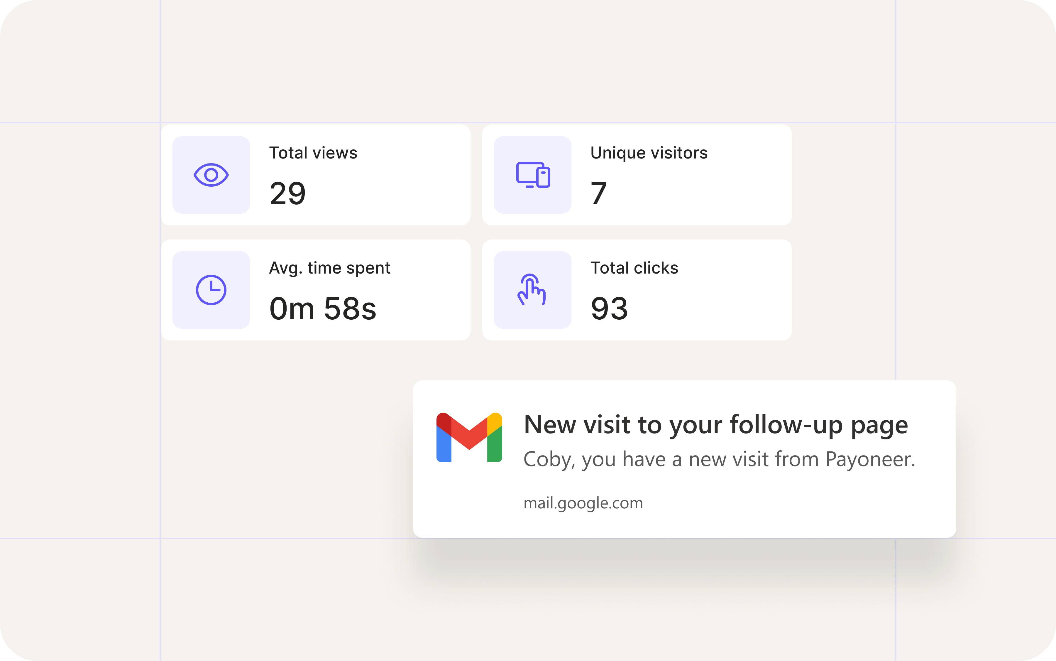Scene shares every piece of content via a secure link instead of static email attachments. Each link includes advanced engagement analytics and real-time notifications, so you can track who views or shares your materials and see exactly how prospects interact with them.