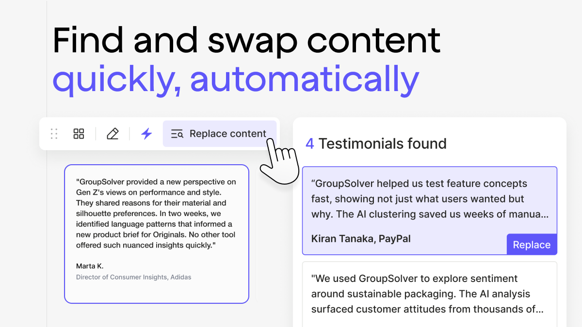 The Company Blueprint just got smarter. You can now search and swap content directly from within your materials, simply ask for what you need. Scene instantly surfaces the most relevant content from your blueprint, keeping every piece accurate, on-brand, and up to date.